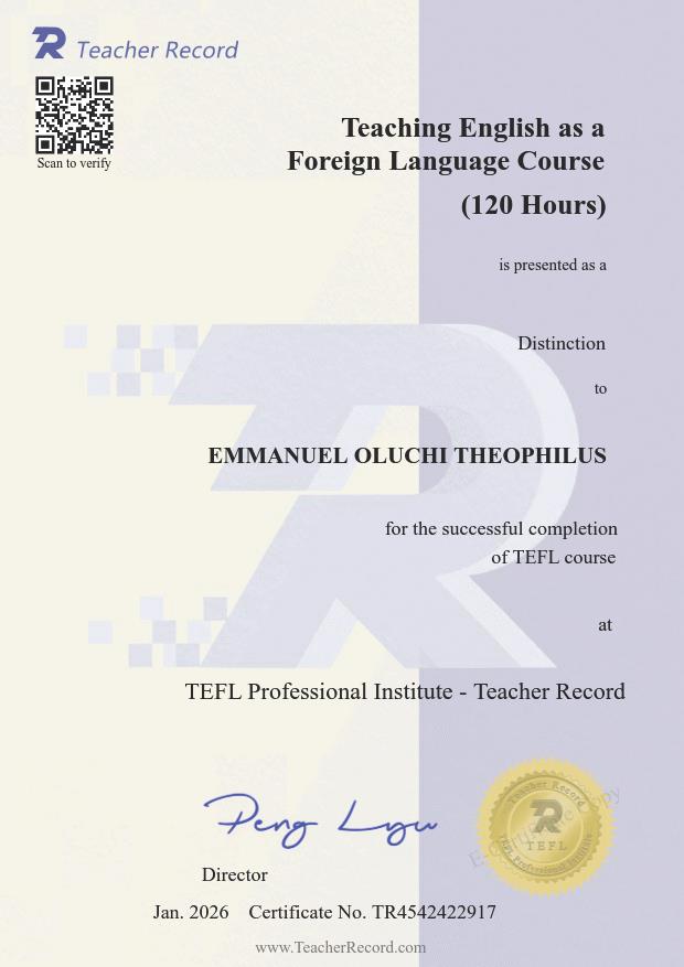 I am an experienced English teacher with extensive classroom and online teaching expertise. I believe every student is teachable with the right guidance, and my teaching style brings out the best in each learner. As a TEFL certified educator and published author, I combine language mastery with effective communication skills to help children, teens, and adults speak English confidently and enjoyably. My classes are interactive, personalized, and designed to make learning English fun while achieving real progress.