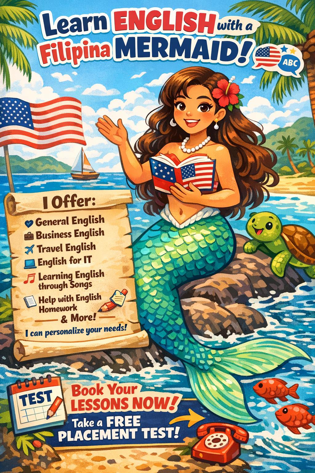 Certified Mermaiding Enthusiast: Yes, I have a basic mermaiding certificate proof that I dive deep into learning, literally and figuratively. If I can swim like a mermaid, I can help you master English with confidence!