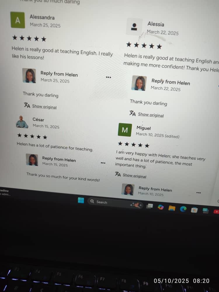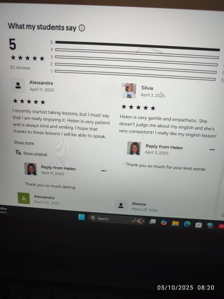 Helen is supper amazing she helped me gain fluency within 2 months of constant practice with her I highly recommend 🥰