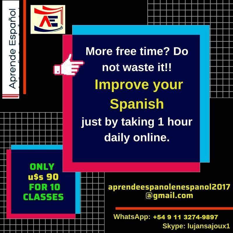 Please don't hesitate to contact me to take a first FREE lesson in order to know each other and give me the opportunity to evaluate your current Spanish level and thus prepare a customized program for you!