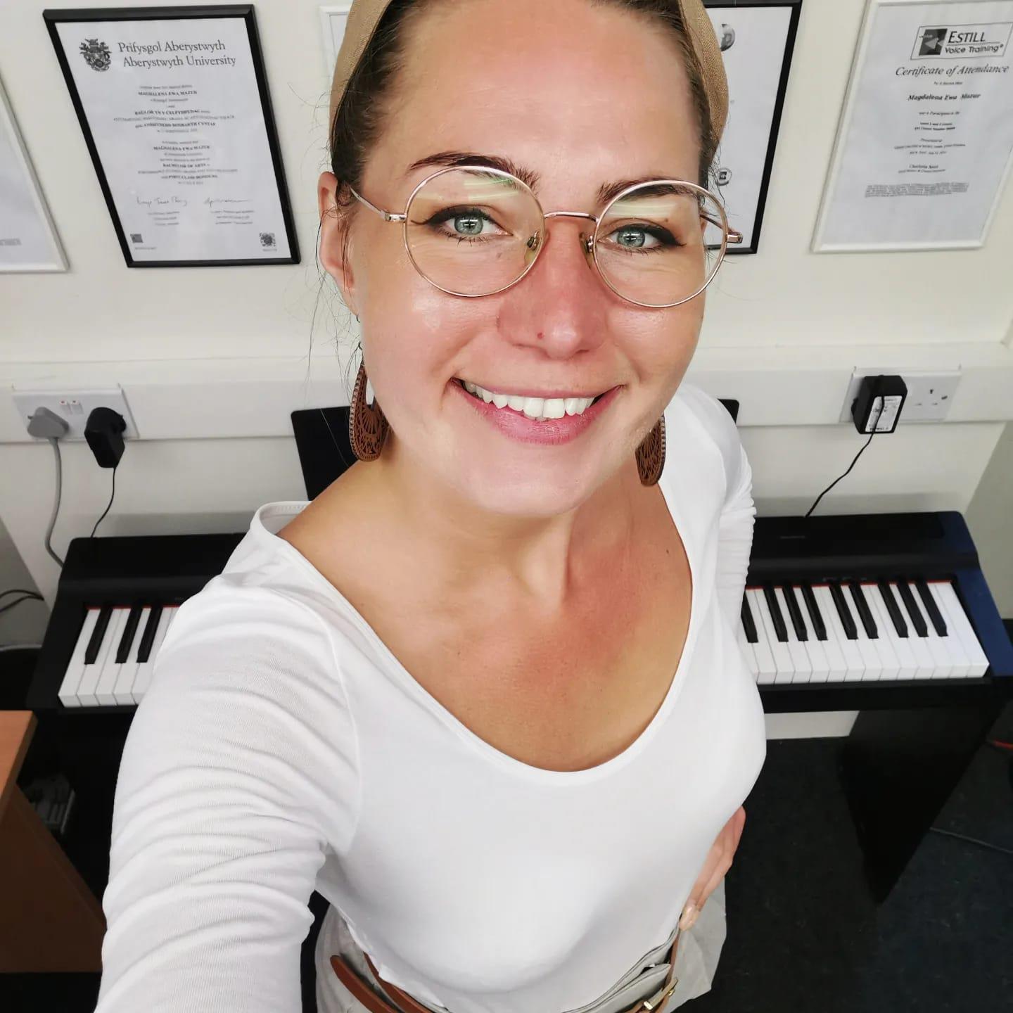 Hello, I'm Magdalena, the passionate founder of Vocalize Studio, where I've been empowering individuals of all abilities and ages since 2018. My mission is simple: to help you enhance your vocal skills, boost your confidence, and master voice control. With over a decade of experience in singing and teaching, I bring a wealth of knowledge to my students. Holding a degree in MA Professional Voice Practice from the Royal Birmingham Conservatoire, I base my lessons on the esteemed Estill Voice Training technique. Whether you're a beginner or an advanced vocalist, I tailor my approach to meet your unique needs and preferences, offering both in-person and online learning options for your convenience. Together, we'll create a relaxed yet goal-oriented environment where you can explore your chosen repertoire and refine your technical abilities. If you're eager to embark on a journey of musical discovery and vocal enhancement, I invite you to reach out and begin our transformative learning experience today.