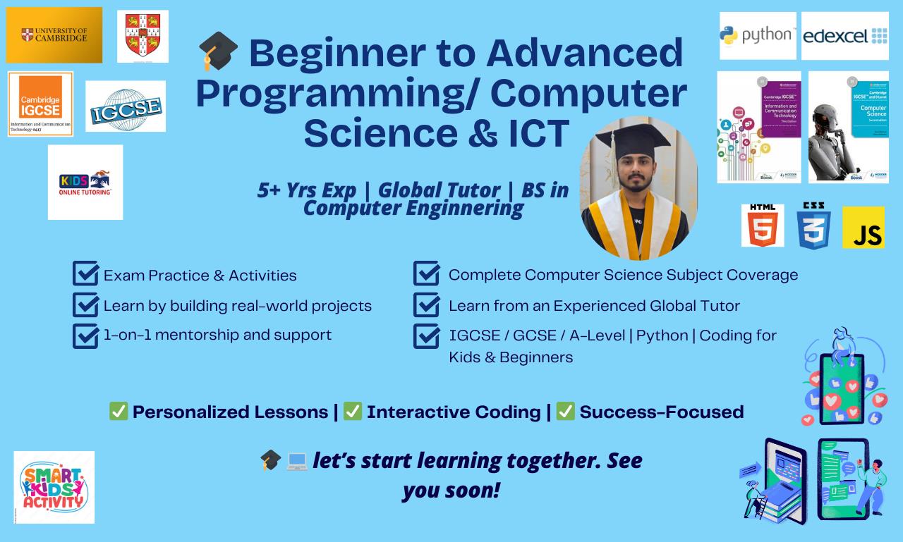 Certified Computer Science Tutor | Python, Java, Web Dev | IGCSE, GCSE, A-Level Expert | Coding for Kids | Real-World Programming | AI & Data Structures | 5+ Years Global Teaching Experience