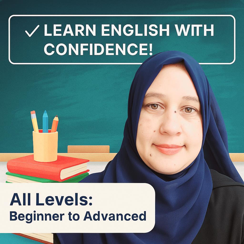 My lessons are interactive, clear, and designed around your goals — whether you want to improve your speaking, grammar, writing, or confidence in English.