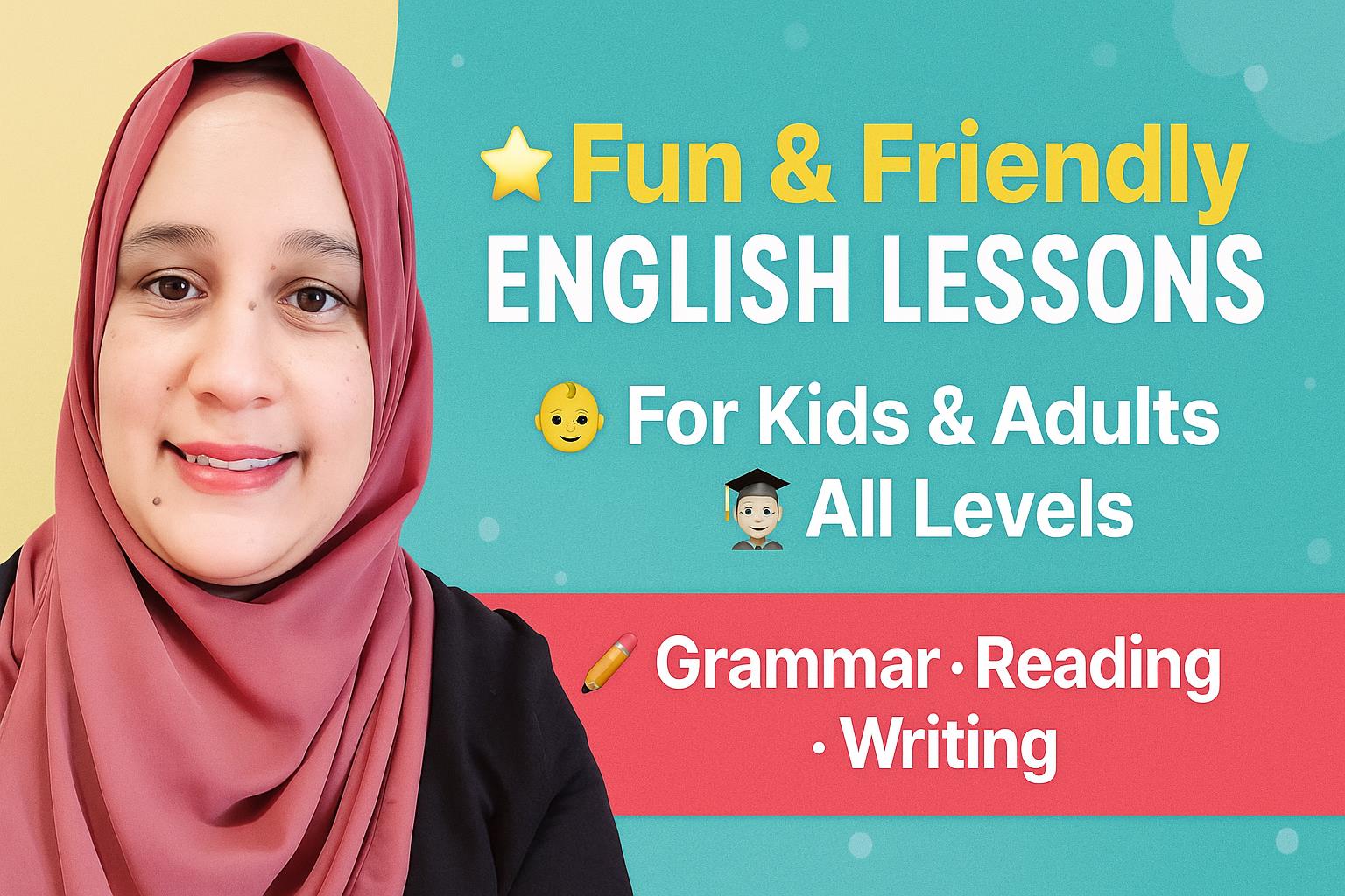 I specialize in helping kids, teenagers, and adults build strong English skills in a fun and supportive environment.