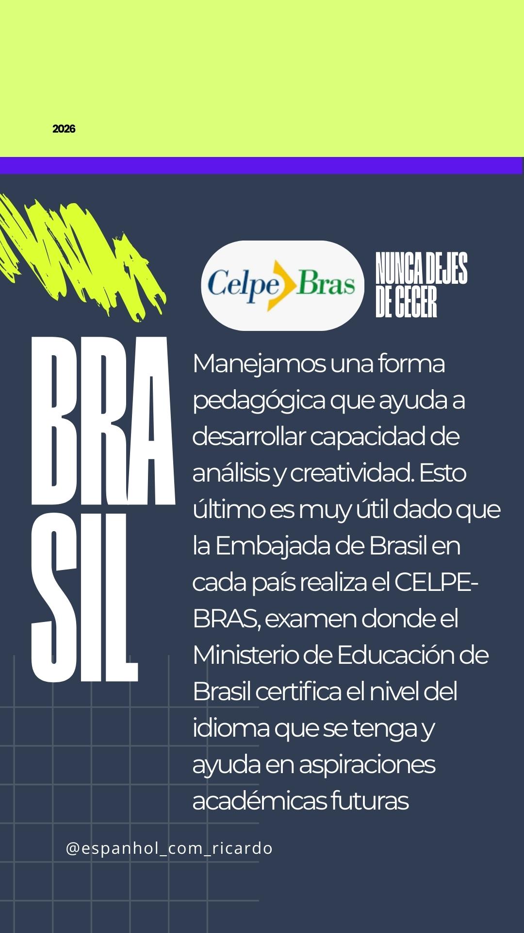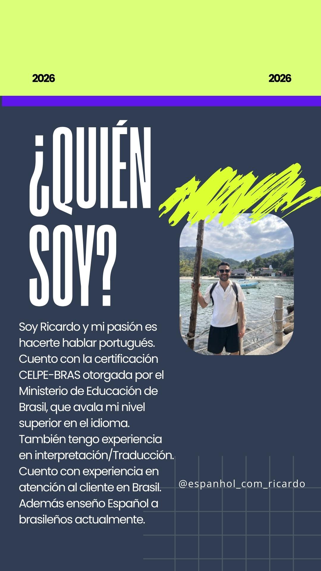 Soy Ricardo y mi pasión es hacerte hablar portugués. Cuento con la certificación CELPE-BRAS otorgada por el Ministerio de educación de Brasil, que avala mi nivel superior en el idioma. También tengo experiencia en interpretación/Traducción.