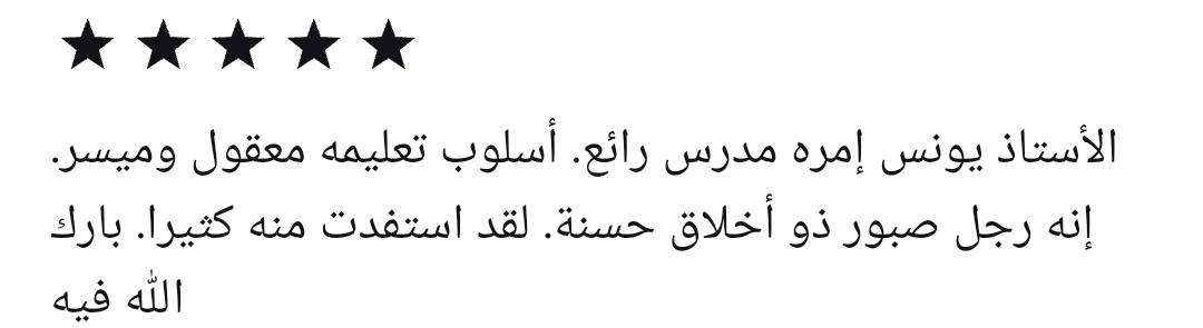 Aconsejo sin dudarlo a Yunus. Hace clases muy amenas, es muy paciente, me corrige y explica todos mis fallos, y encima me divierto. Creo que voy a aprender mucho con el.