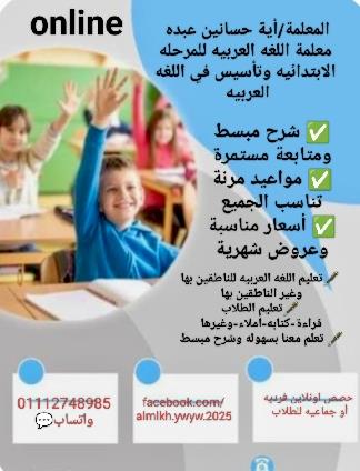 انا مدرسة لغه عربيه ولدي خبره لا تقل عن 5سنوات في مجال تدريس اللغه الام وحاصلة علي ليسانس اداب كليه الاداب جامعه عين شمس وبالإضافة إلى ذلك حاصله على دبلوم تربوي للغه العربيه من كليه التربيه جامعه عين شمس فا انا علي أتم الاستعداد لتعليمكم اللغه العربيه بإتقان فنحاول معا تحقيق حلمك في إتقان اللغة وتقوية مهاراتك ونسعي معاً للنجاح الباهر