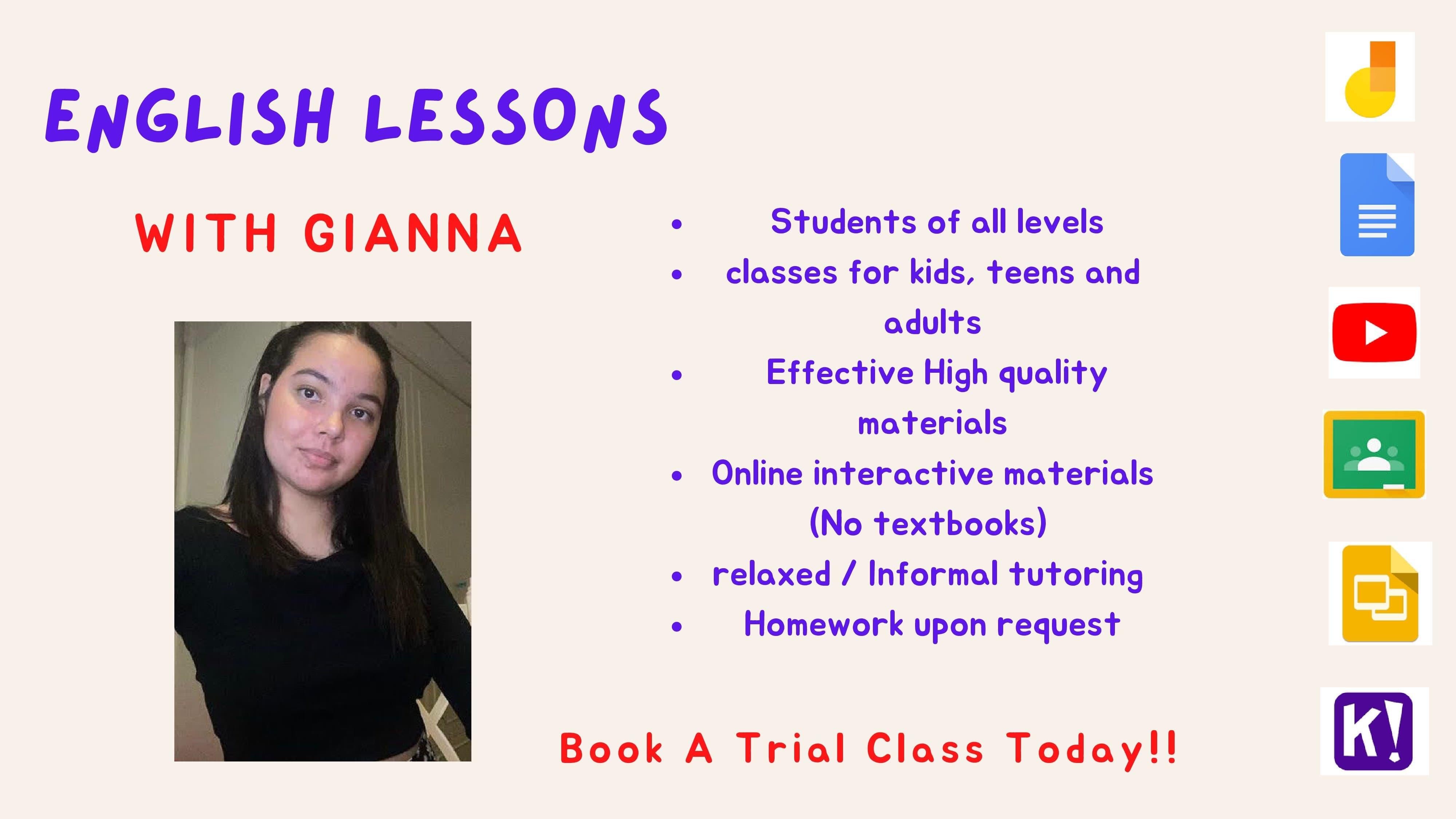 Hola, me llamo Gianna, tengo 21 años y me apasionan los idiomas, ¡especialmente enseñarlos! Por esta razón he estado dando clases particulares de inglés y español a estudiantes de todas las edades: niños, adolescentes y adultos. Mi pasión por los idiomas viene de mi papá, ya que él habla siete idiomas. Yo hablo inglés, español, tailandés, algo de italiano, un poco de francés y también un poco de mandarín. Me gradué de una escuela internacional aquí en Tailandia y estudié el programa del Bachillerato Internacional (IB). Desde entonces, he dado clases particulares de español a estudiantes del IB como voluntaria, solo con el fin de ayudar y compartir mis conocimientos, por lo tanto, no fue un trabajo remunerado, sino una forma de ganar experiencia. Con el tiempo decidí tomar un camino más profesional y comencé a enseñar inglés y español (siendo el inglés mi lengua materna y el español mi segunda lengua) en plataformas en línea como Preply, Bestkru y Classgap.