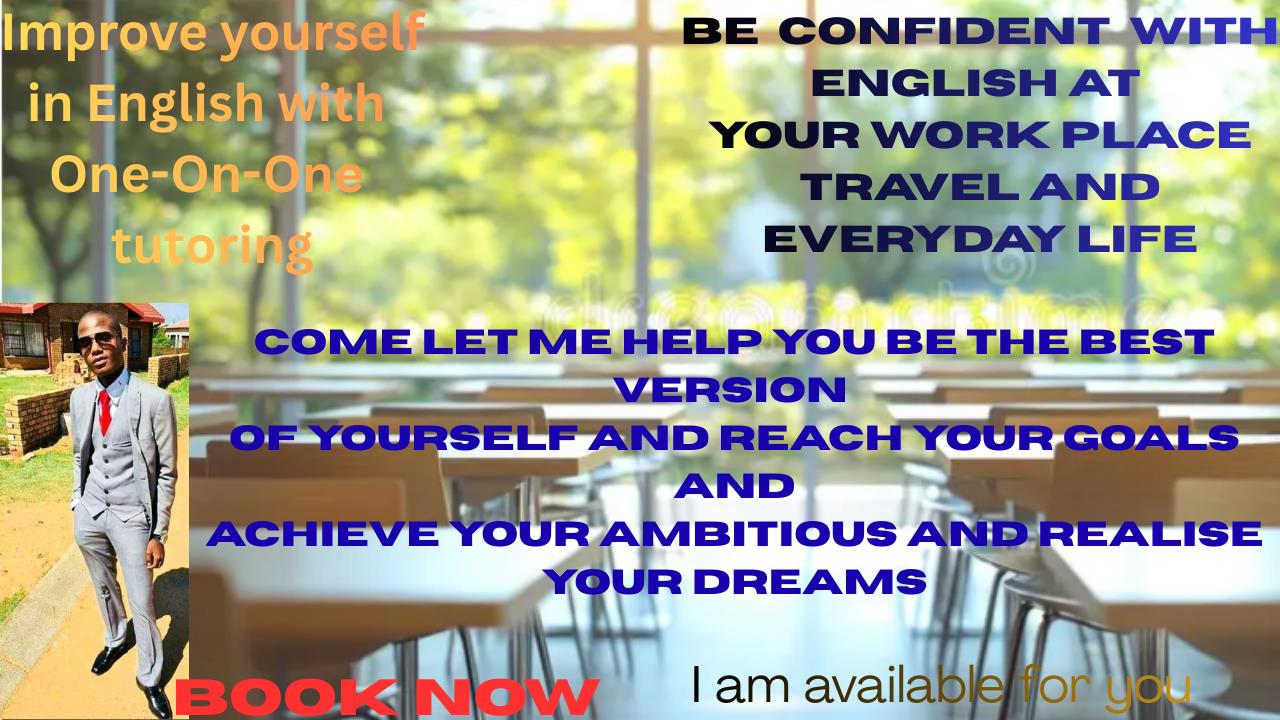 I will help you meet your goals and achieve your ambitions, I am here for you so that you can excel and improve yourself, so as your potential tutor I will do my best to help in your pronunciations , improve your vocabulary and also teach you how to speak calmly and confidently for your job interviews , presentations and public speaking. I will help you to be the best version of yourself, I will show you that you also can speak English and can do and reach every goal you have set for yourself, I am here to guide, assist and help you reach your full potential and reach greater heights in your career or everyday life. I will teach you English for your work, your travels and your everyday life so that you can boldly stand with confidence and speak English like all the others that you look up to, I say You can do it your the best and you are smart and intelligent , and nothing is hard for you even English you will master.