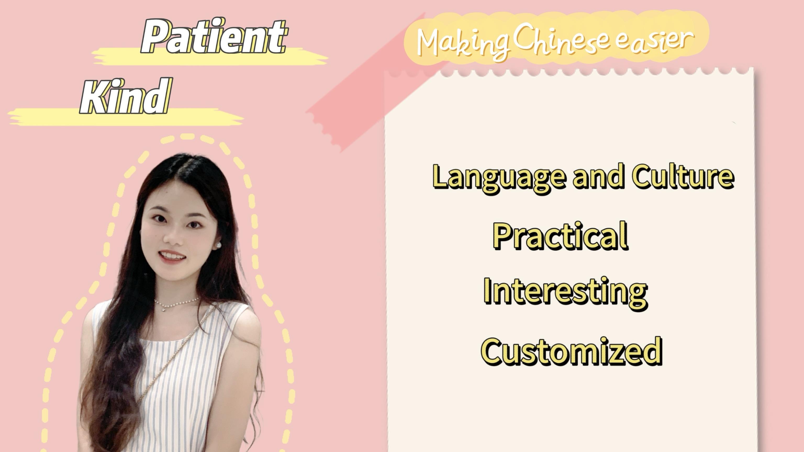 🟡 I graduated from a Normal University with a major in Chinese Language and Literature, possessing rich theoretical knowledge and practical experience in Chinese teaching. I have a broad understanding of Chinese history and regional culture, which can help you gain a deeper understanding of Chinese culture and spark your interest in learning Chinese.