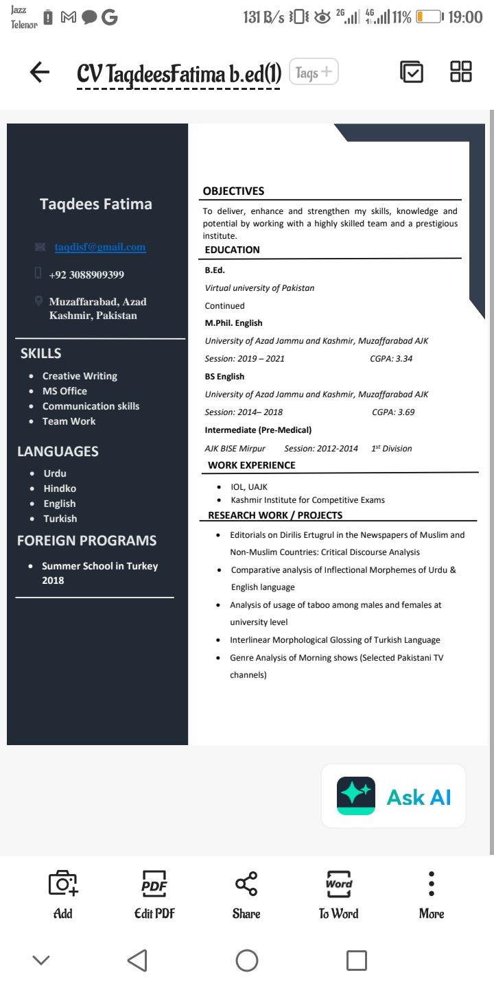 Hello! I'm Taqdees Fatima, a passionate language instructor with a Master's degree in Linguistics and currently pursuing my Bachelor's in Education. I'm thrilled to share my love for teaching and learning languages with you!