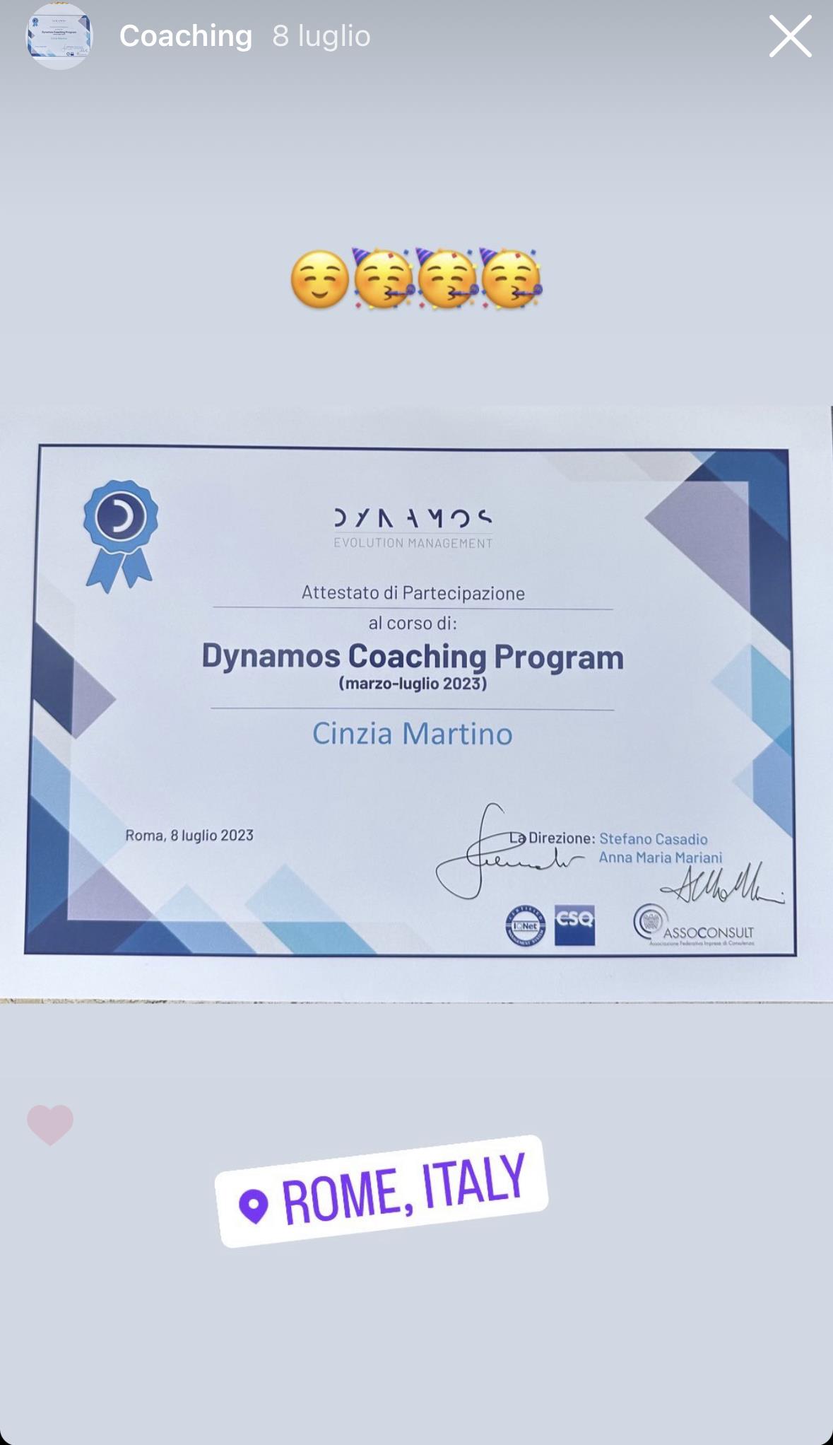 Ciao, sono Cinzia Martino, sono Business, Sport & Life Coach diplomato. Aiuto le persone a far chiarezza e a raggiungere i loro obiettivi, a scoprire il loro pieno potenziale.